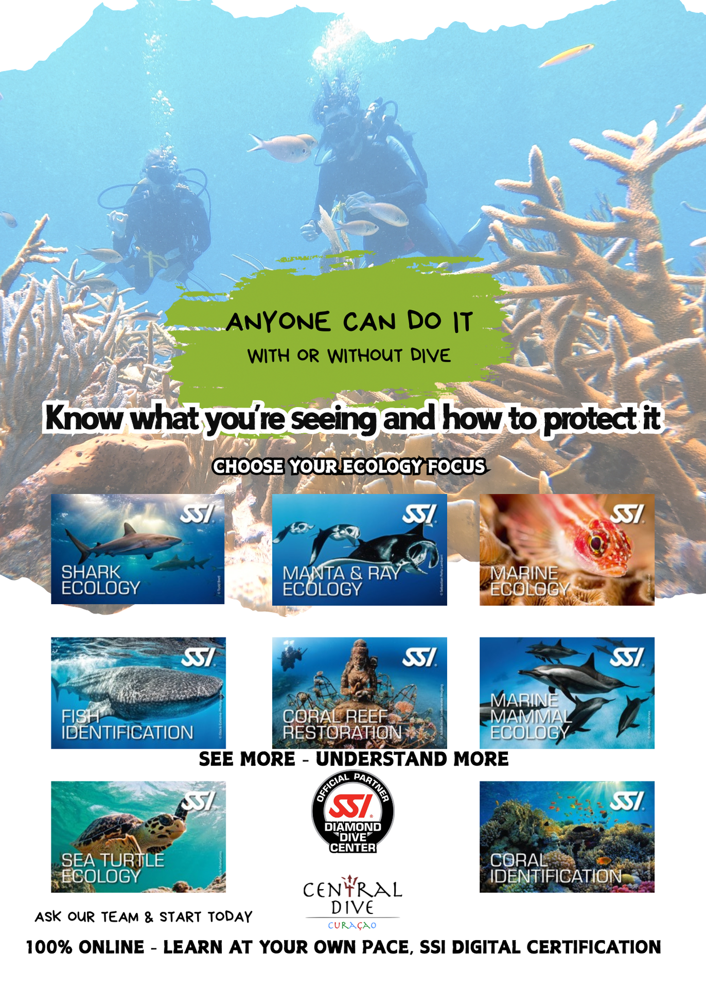 Dive deeper into the world of marine biology. Every few month, we offer exclusive discounts on all SSI Ecology (ECO) courses. Learn all about sharks, sea turtles, or coral reefs. All online from the comfort of your home and get perfectly prepared for your next dives in Curaçao. 👉